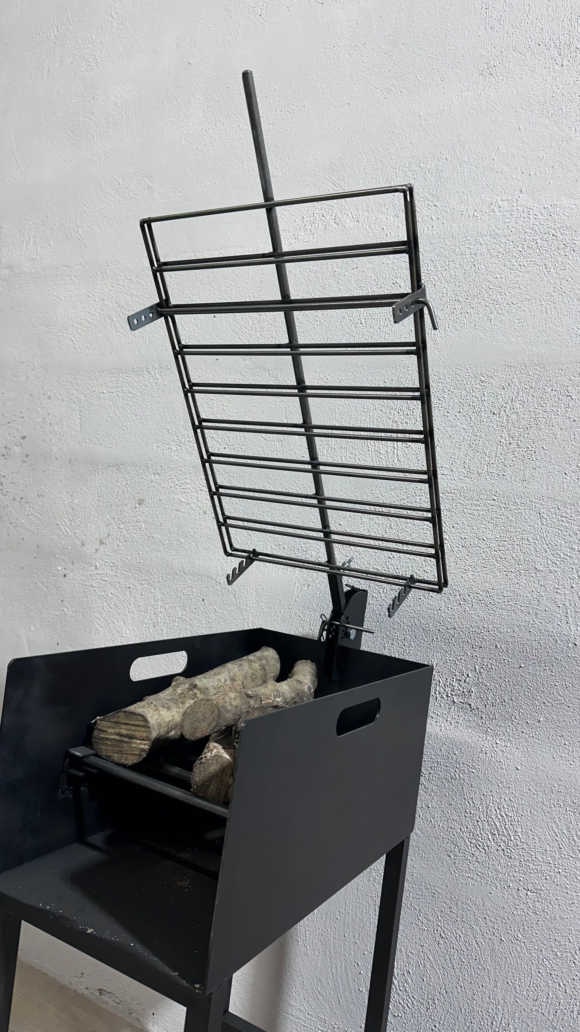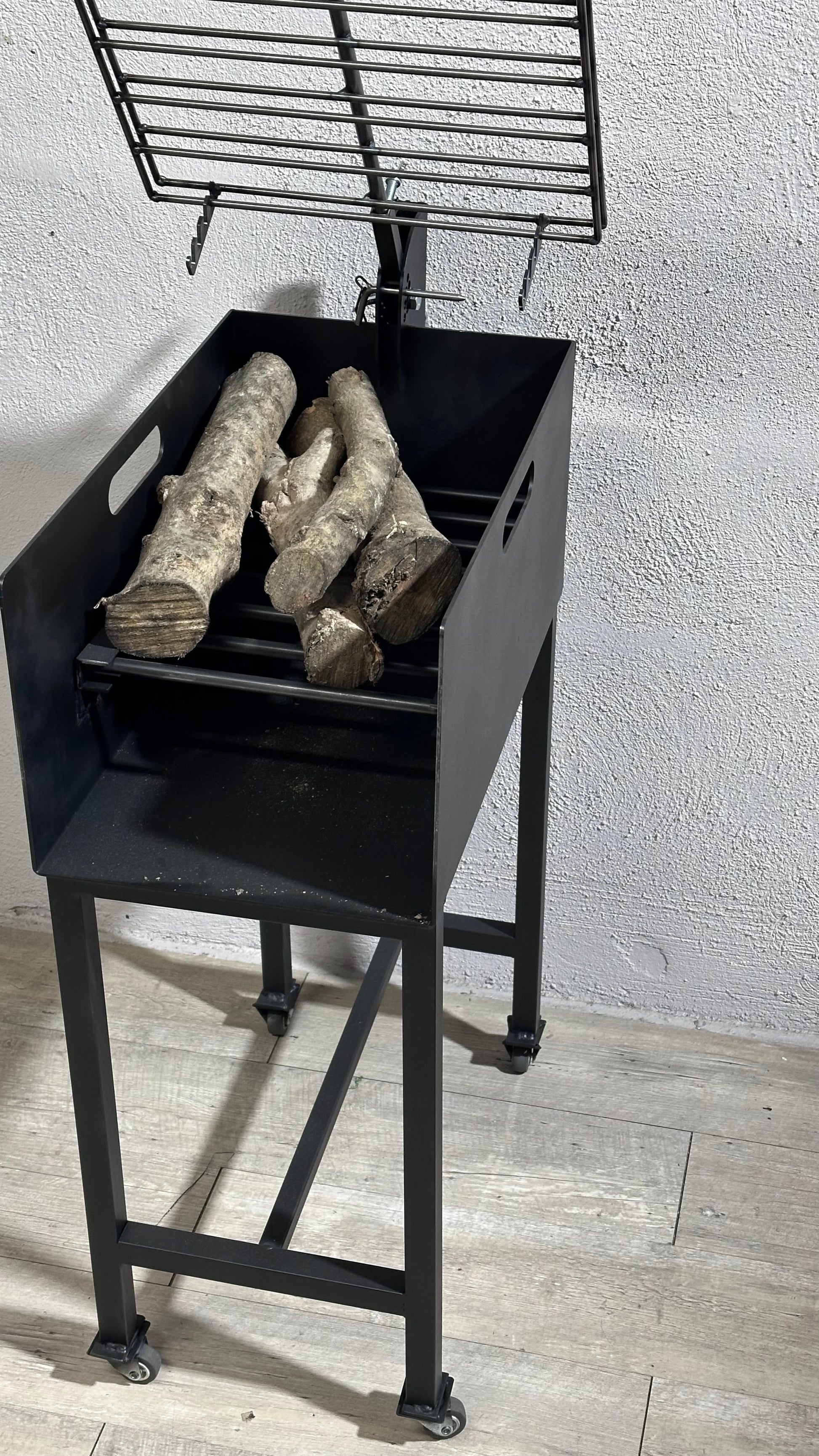 Brasero de pie con ruedas. Emparrillado desmontable para mas comodidad.